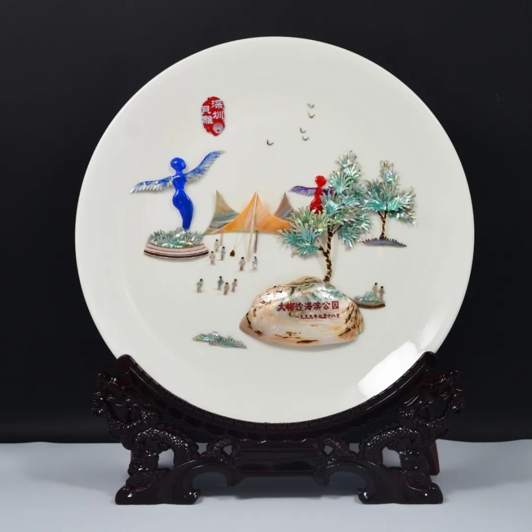 精選珍貴的海洋、湖泊貝殼,突出展示了大梅沙極具代表性的羽翼人雕塑、濱海帳篷、金色沙灘及公園入口游人如織的景象,如此絕美風光,黃金海岸游人如織亦是必然,這也突出了大梅沙的非凡魅力。